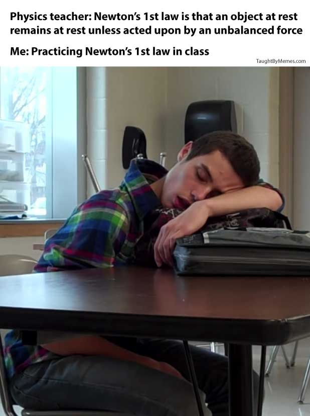 I'm not sleeping in class, I'm just practicing Newton's 1st law